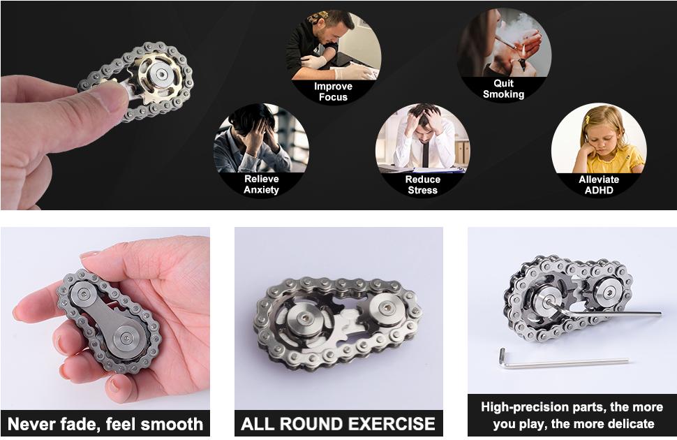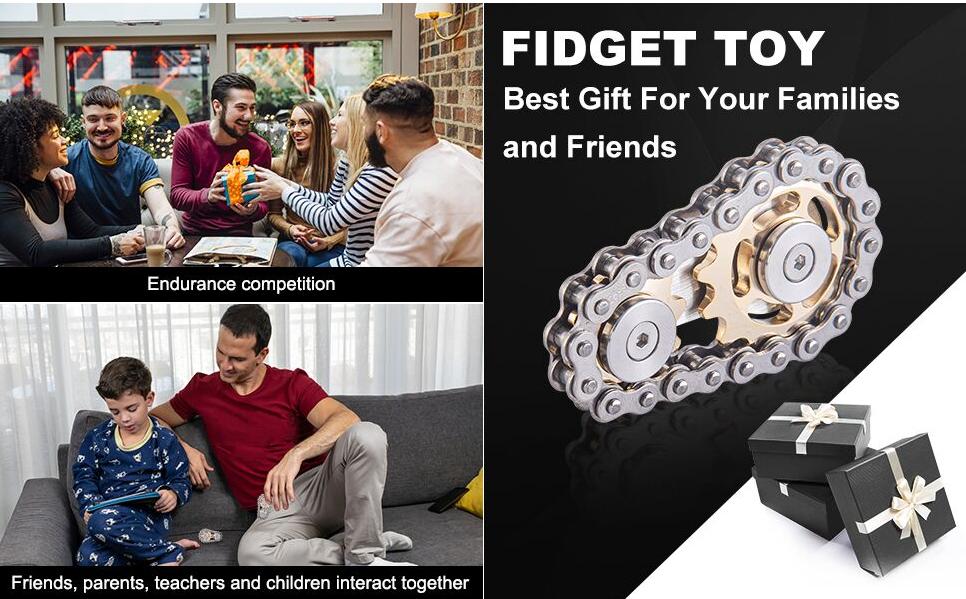 Benefits of using a fidget spinner for the elderly - The bicycle chain gear fidget spinner is not only suitable for adults but also for the elderly Since the spinner can fit anyone, it can help to strengthen the muscles of the hands and fingers to maintain the ability to use them.