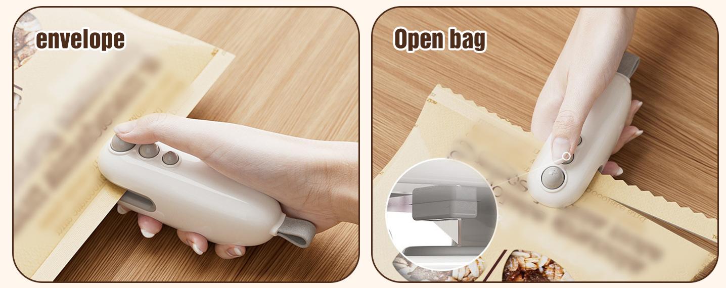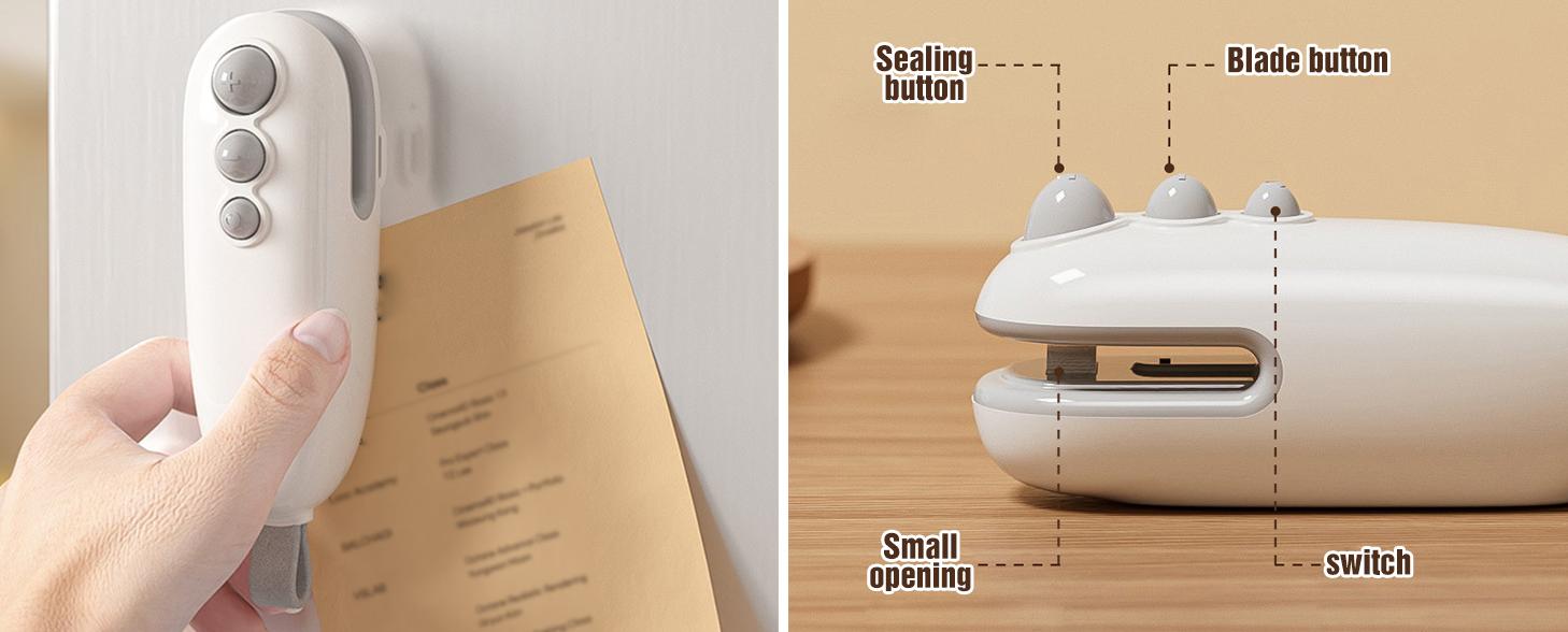 - 【Safe Built-in Hidden Cutter】Featuring a concealed cutter, this portable sealer offers a safer way to open plastic bags without exposed blades. The hidden cutter design minimizes accidental cuts, making it suitable for family use and even safe for children’s snack storage.