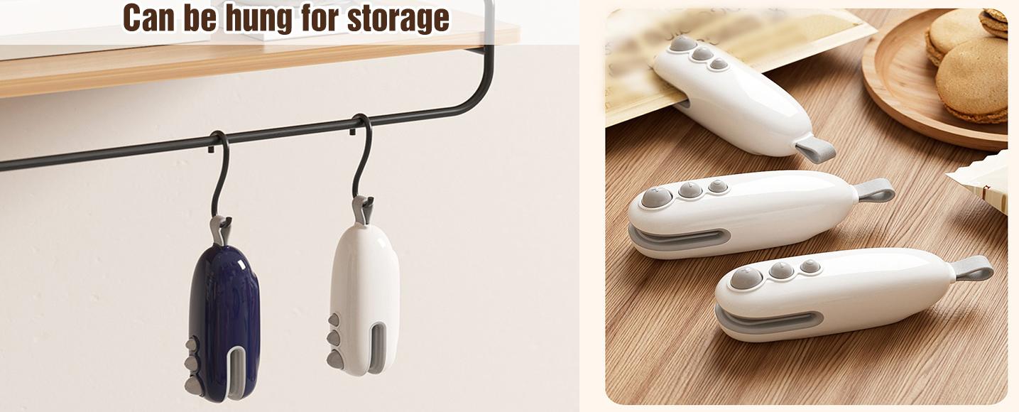 - ️【Compact & Portable Design】Designed with a magnetic strip and lanyard, this portable bag sealer is easy to carry in your bag or hang on the fridge. Its small size and convenient attachments make it ideal for outdoor activities, travel, and daily home organization.