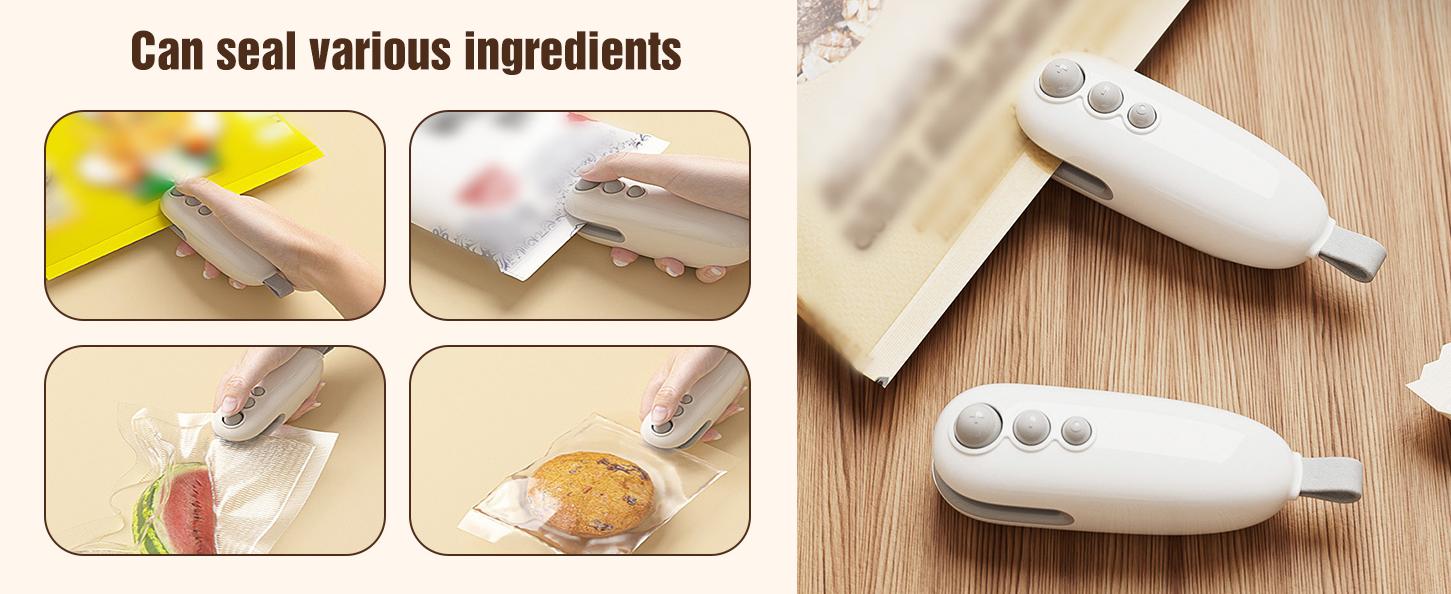 - 【Seals for Lasting Freshness】The heat sealer function allows you to reseal chip bags, snack bags, and food bags, locking in freshness by keeping air out. This bag sealer helps reduce waste and preserves your food longer, perfect for daily kitchen use and travel.