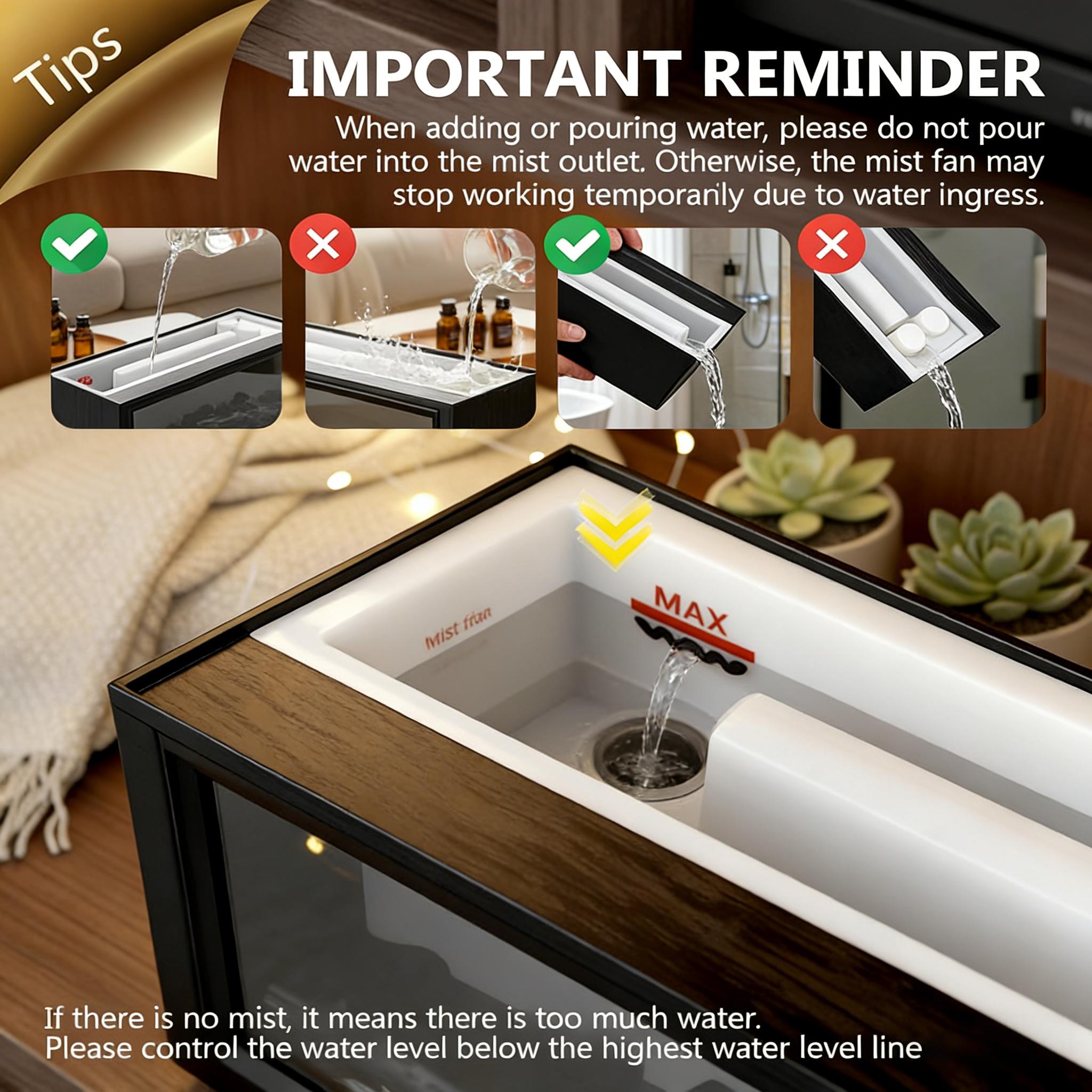 【Realistic Flame Fireplace Humidifier】4-in-1 Ultrasonic humidifier & Aromatherapy Oil diffuser with realistic flame effect and 7-color night light, creates a realistic flame effect, as if a warm flame is burning right in front. Add 3-5 drops of your favorite essential oil to relieve fatigue and moisturize the skin.