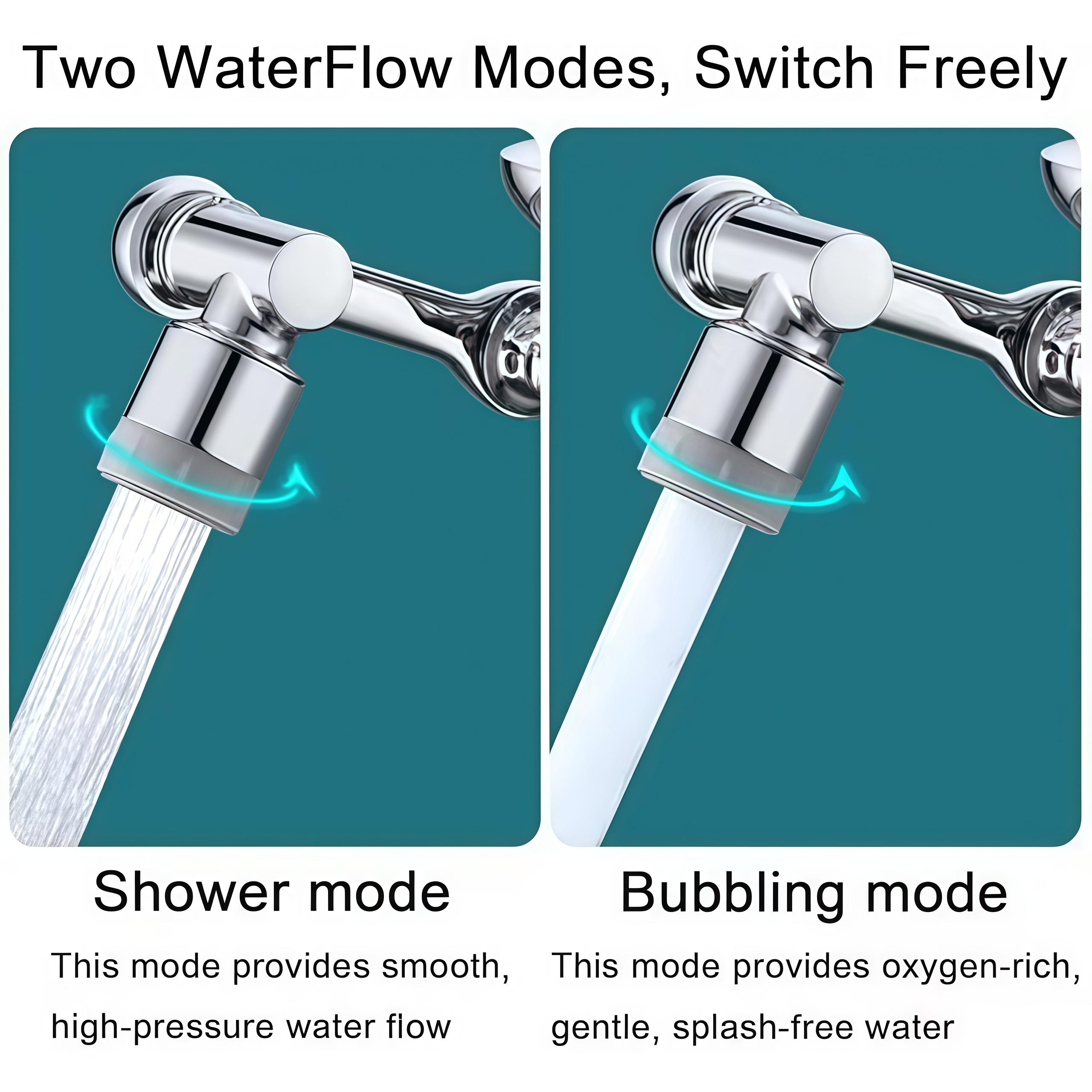 【Full 1440° Rotation – Total Sink Control】 The 1080° Rotating Faucet Extender features a unique 4-joint design The faucet extender for kitchen sink innovatively adopts a rotate, bend and fold360° rotation design to achieve 1080°--1440° rotation, so that any corner of the sink can be easily reached, without the effort of moving items, and rotating faucet aerator can easily cope with various scenarios
